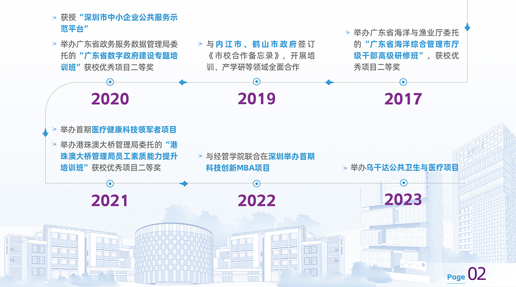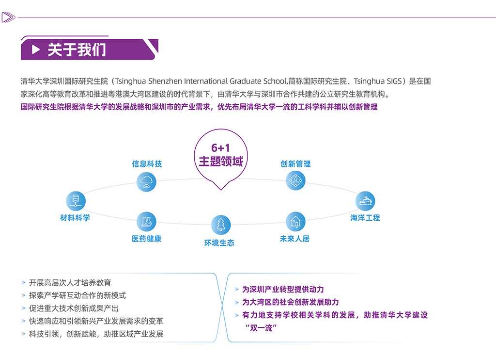清华大学深圳国际研究生院培训学院作为国际研究生院从事继续教育和社会服务的二级单位,主要开展高层次、高水平、高质量人才教育培训工作,以“培养人才、服务社会”为己任,立足深圳、辐射大湾区,聚焦高端化、国际化、特色化以及线上线下教育融合发展的新思路和新模式,并辅以“6+1”主题学科优势,深入服务国际研究生院建设世界一流研究生院、产学研合作以及地方经济社会发展,为深圳市和大湾区的产业转型、创新发展提供助力。培训学院高管课程覆盖管理、金融、营销、地产、科技创新等多个专业领域,并为政府和企业提供定制化的培训服务。