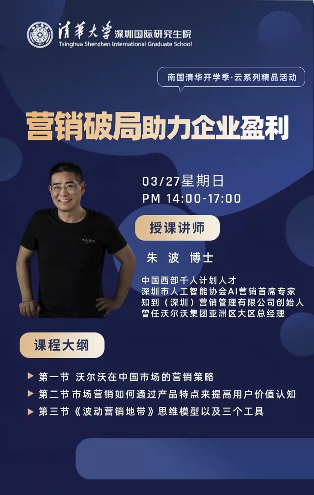 【南国清华开学季·云系列精品活动】3月27日 《营销破局助力企业盈利》