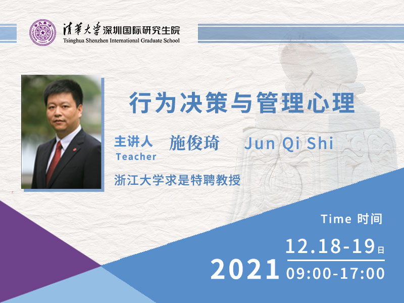 施俊琦 12月18-19日 主讲《行为决策与管理心理》