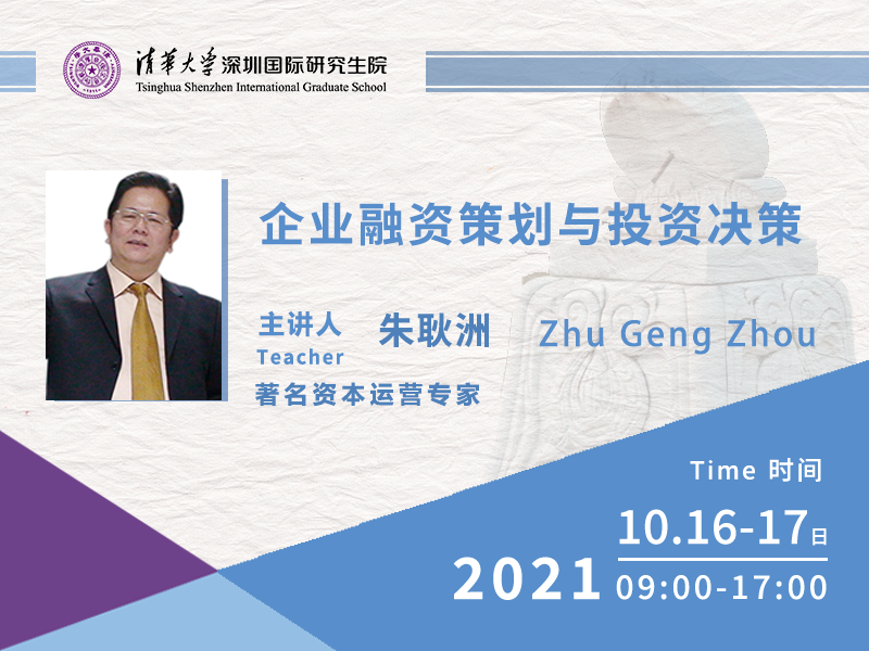 朱耿洲 10月16-17日 主讲《企业融资策划与投资决策》