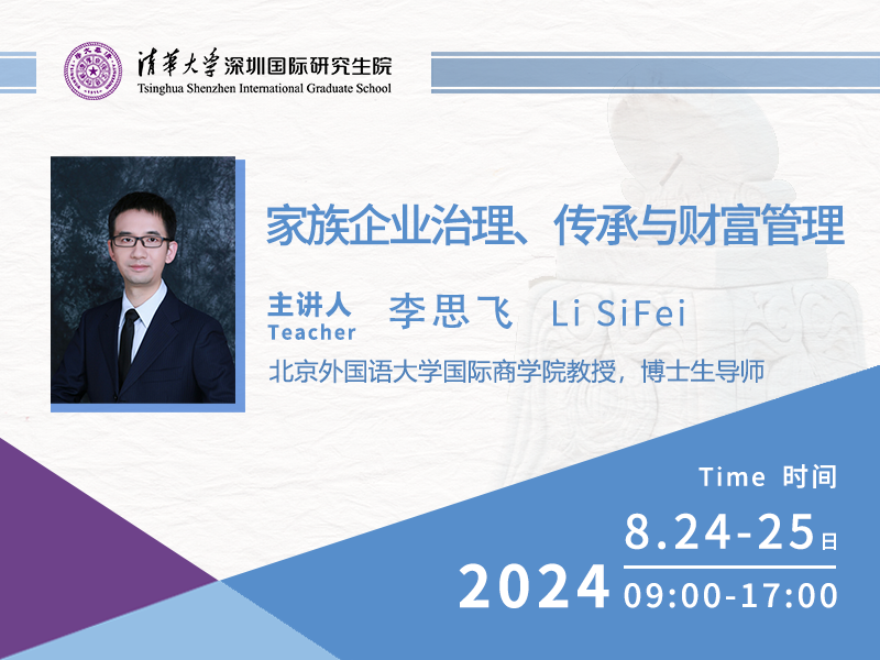 李思飞 8月24-25日 主讲《家族企业治理、传承与财富管理》