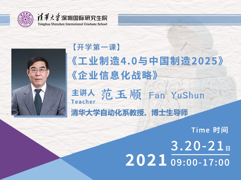 【课程预告】开学第一讲 03月20-21日 清华大学教授 范玉顺主讲 《工业4.0与中国制造2025》、《企业信息化战略》