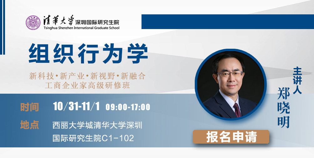 【课程预告】10月31日-11月1日清华经管学院郑晓明教授主讲《组织行为学》