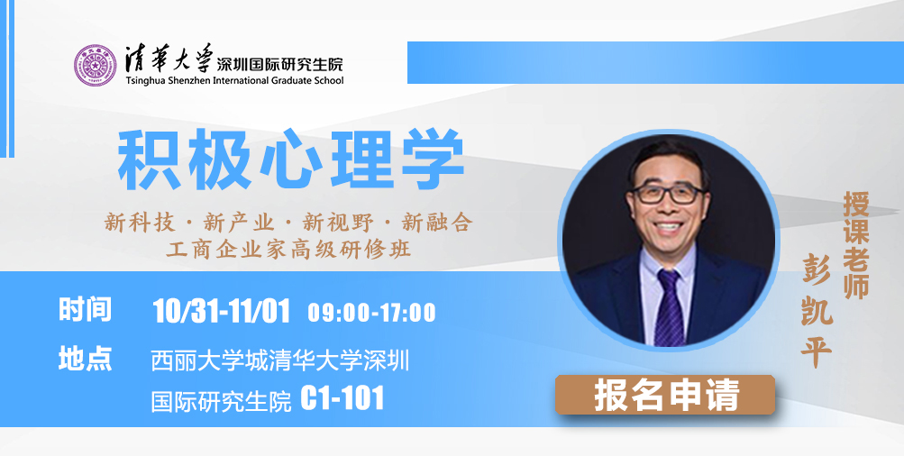 【核心课程】10月31日-11月1日清华彭凯平教授主讲《积极心理学》