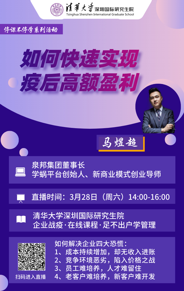 企业战“疫”直播课 | 3.28《如何快速实现疫后高额盈利》新商业模式创业导师马煜超主讲
