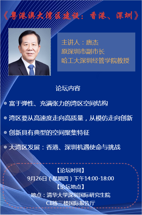 【论坛】9月26日《粤港澳大湾区建设:香港、深圳》邀请函