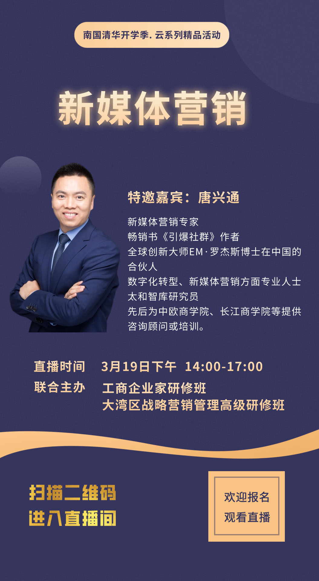 【南国清华开学季·云系列精品活动】3月19日 《新媒体营销》