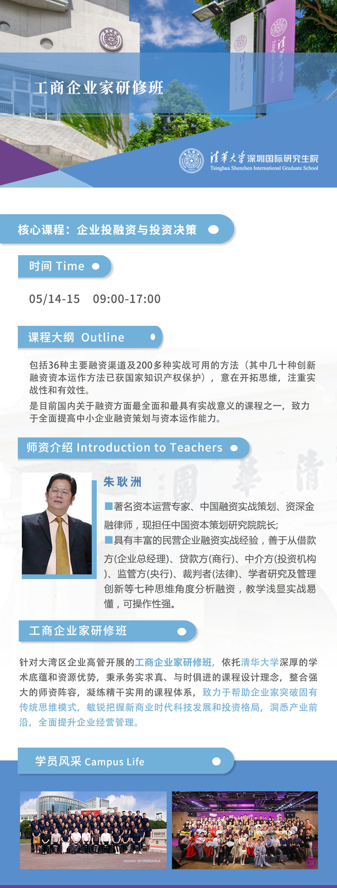 朱耿洲 05月14-15日 主讲《企业融资策划与投资决策》