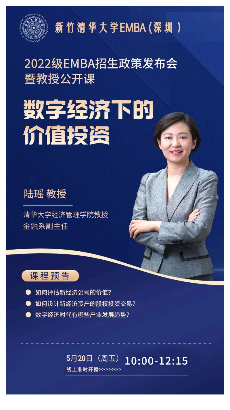 5月20日 新竹清华大学EMBA (深圳) 2022级招生政策发布会暨教授公开课