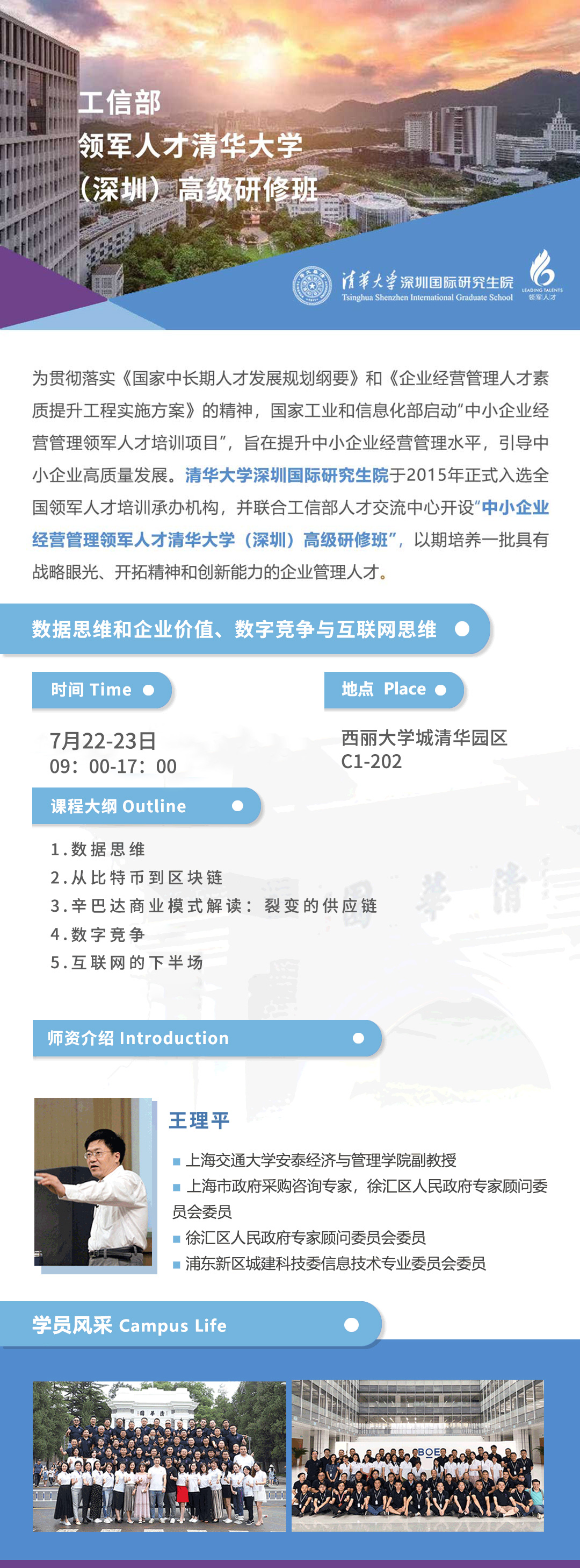 王理平 7月22-23日 主讲《数字思维和企业价值、数字竞争与互联网思维》