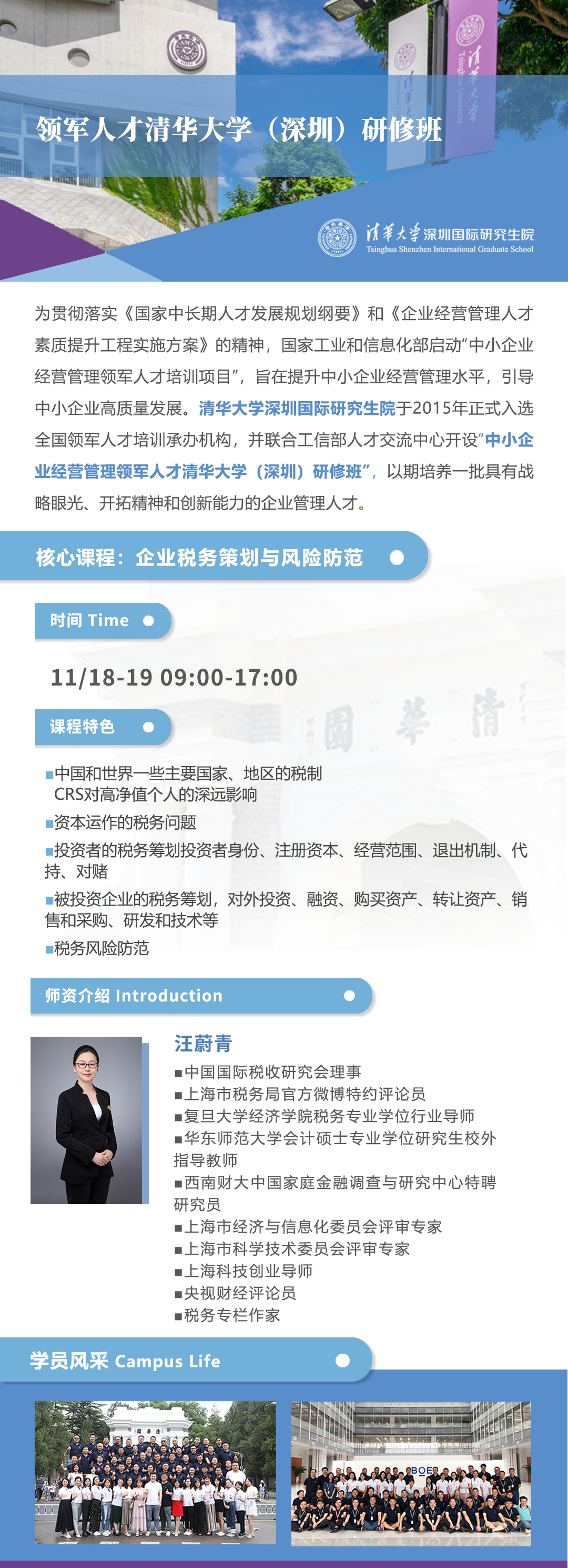 汪蔚青 11月18-19日 《企业税务策划与风险防范》