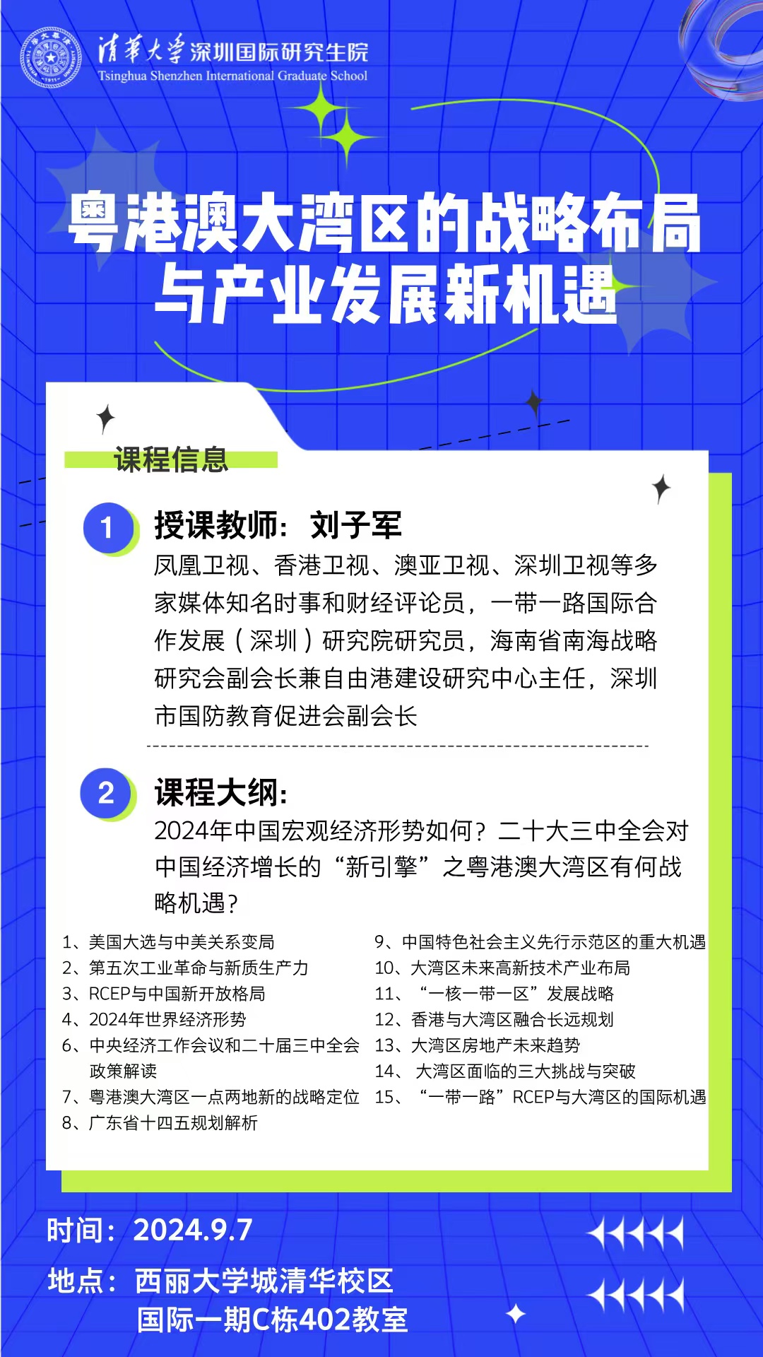 刘子军 9月7日 主讲《粤港澳大湾区的战略布局与产业发展新机遇》