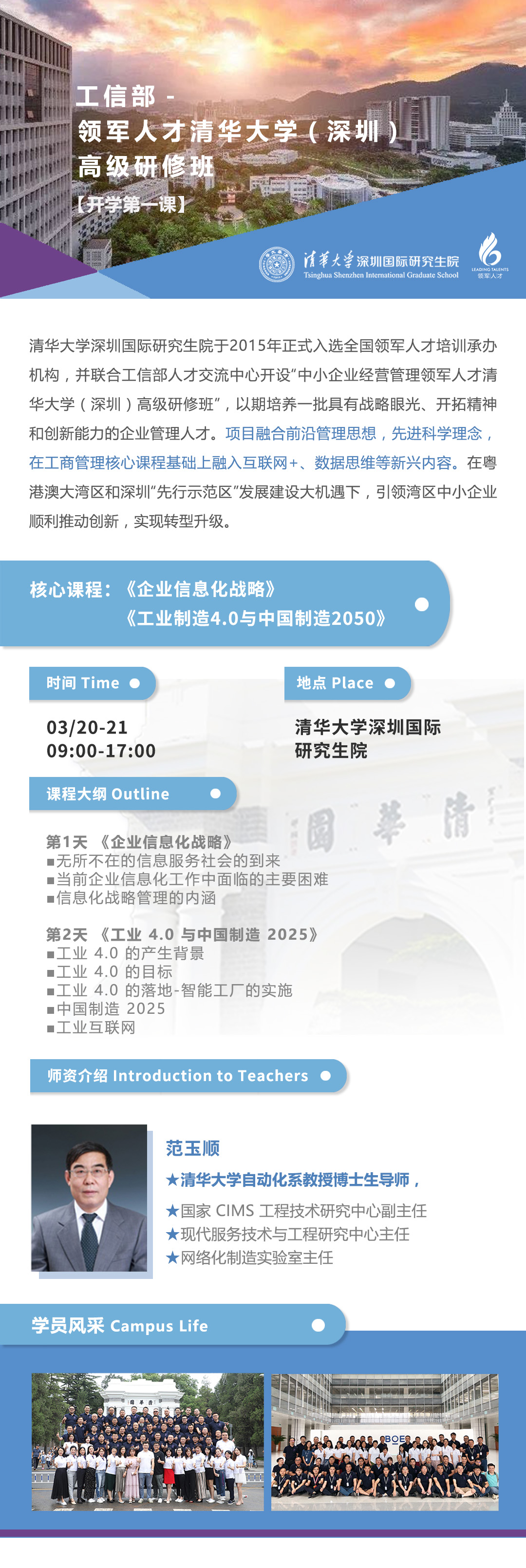 【课程预告】开学第一讲 03月20-21日 清华大学教授 范玉顺主讲 《工业4.0与中国制造2025》、《企业信息化战略》