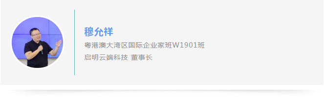 "我觉得企业家精神是合伙人精神,分享精神。"穆允祥是这样看待年轻一代企业家精神的。现今,80后已经是创业的新生力量,朝气蓬勃,正在努力改写中国的商业格局。他们是颠覆者,不同于50后、60后企业家们的做事方式,弱化"关系"处理,更具有分享精神。个人英雄主义的时代已经基本过去了,更多年轻人意识到现在是依靠团队开拓事业的创业时代。在清华的学习也更加坚定了穆允祥的想法,"现代企业法律意识、财务意识、技术储备等方面的内容缺一不可,但绝大多草根创业者是懵懂的,需要合伙人。在清华上课时我们就在聊天中为更年轻的同学公司解决了财务税务相关盲点问题,启明云端走过了第8个年头,我们有类似的经验,就能避免一些风险,让一些新生企业少走弯路。这也是班级和平台给予我们的一份责任与馈赠。除此之外,垂直领域机会有限,在清华课堂上与同学的交流也会碰撞出跨界合作的机会以及更多创新商业模式。"