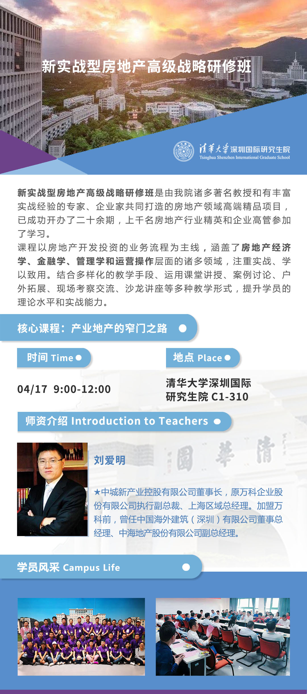 【课程预告】4月17日 刘爱明 主讲《产业地产的窄门之路》