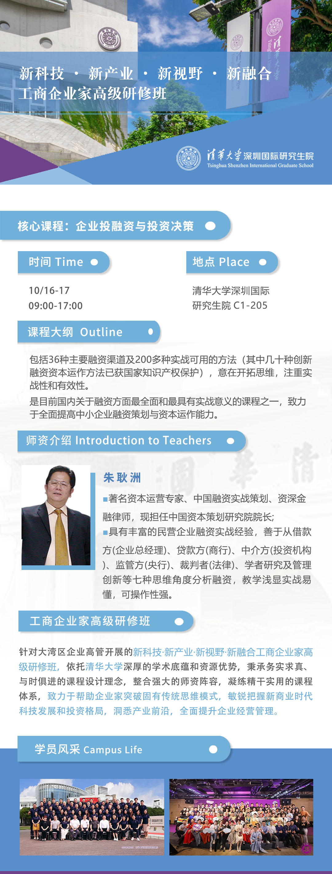 朱耿洲 10月16-17日 主讲《企业融资策划与投资决策》