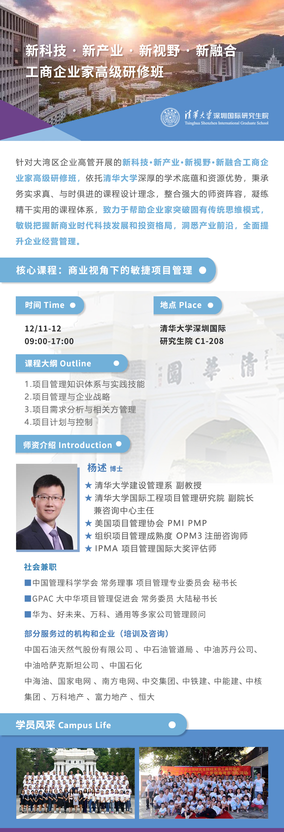 杨述 12月11-12日 主讲《商业视角下的敏捷项目管理》
