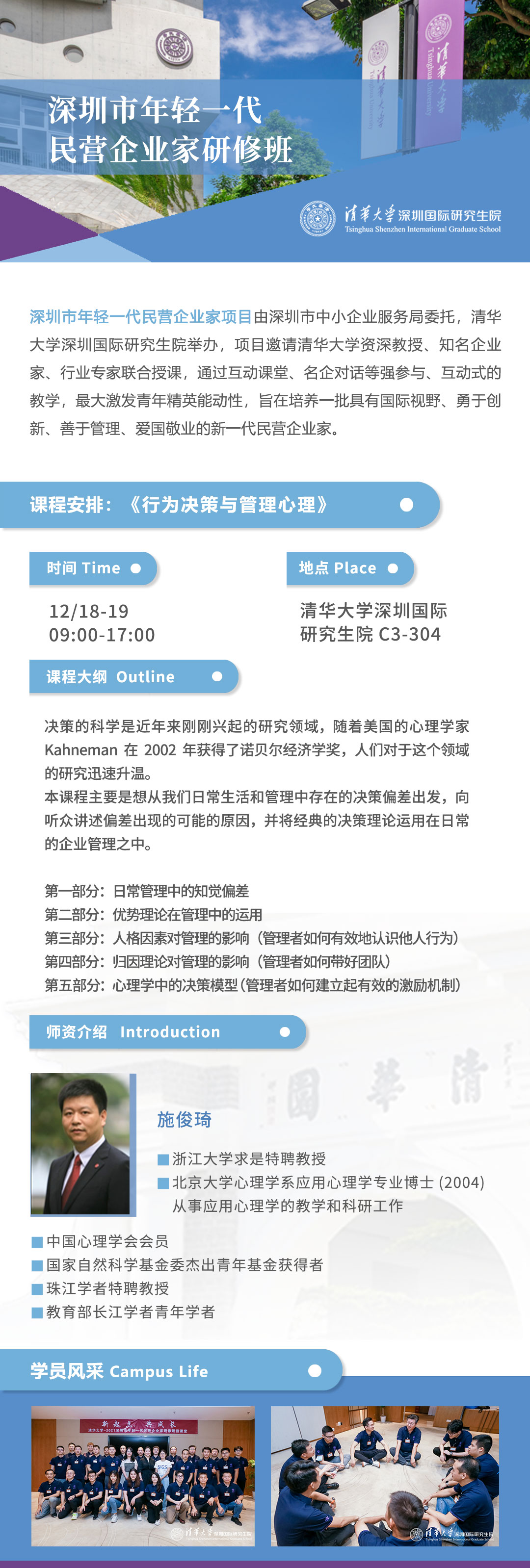 施俊琦 12月18-19日 主讲《行为决策与管理心理》