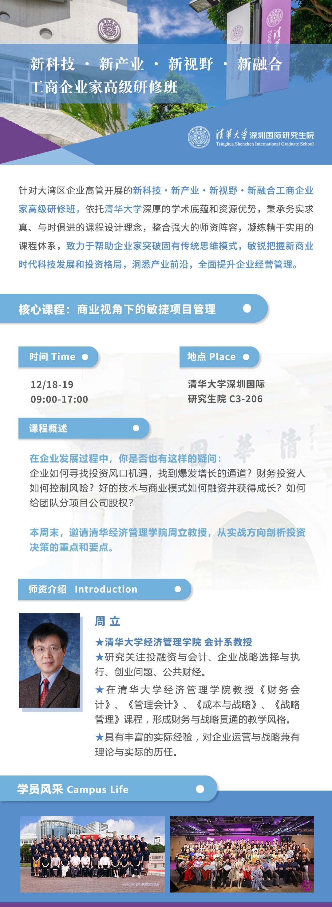 周立 12月18-19日 主讲《商业视角下的敏捷项目管理》